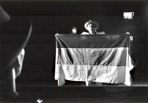 RECKEN BIS ZUM VERRECKEN mit Alexeij Sagerer und Zoro Babel Premiere, 13. Juli 1994, proT-ZEIT ![]() Foto: Volker Derlath SZ vom 15. Juli 1994 DEUTSCHE GESCHÖPFE Deutschland ist vereint, doch der Theaterraum zerfällt in zwei Hälften. Auf einem hölzernen Laufsteg begegnen sich Hagen (Zoro Babel) und Siegfried (Alexeij Sagerer), der Uniformierte und der Geschäftsmann im Rüschenhemd, sie rauchen und argwöhnen, ehe sie per Handschlag einig werden. Hagen und Siegfried gehören zusammen, sie sind Geschöpfe aus Deutschland. Die Position die der Abend im Rahmen des imposanten "Nibelungen & Deutschland Projekts" des proT einnimmt, läßt sich nur mehr mit Hilfe eines Koordinatensystems feststellen: Danach befindet sich die Produktion auf Position 3/3, also drei Schritte nach rechts (horizontal) und drei nach unten (vertikal). So geortet, könnte der Abschnitt "Recken bis zum verrecken" als glänzender Stein im Mosaik des Ganzen identifiziert werden. Doch der dritte Teil des dritten Themas ist für sich genommen ein Brilliant. Sagerer ist das schier unmögliche gelungen, nämlich die Wucht seines Themas auf ein schnoddriges Spiel mit Versatzstücken zu verdichten. Und obgleich im Grunde keine Geschichte erzählt wird, liest jeder eine heraus und nennt sie die eigentliche, die vollständige. Ralph Hammerthaler AZ vom 15. Juli 1994 VOM FRESSEN UND GEFRESSEN WERDEN Die Mythen fressen ihre Kinder, die Helden haben ausgedient. Deutschlands Wiedervereinigung als Geschichte vom Fressen und Gefressen werden erzählt Theater - Avantgardist Alexeij Sagerer im jüngsten Teil seines Nibelungen & Deutschland Projekts, "Recken bis zum Verrecken". Selten ist Theater so radikal - sinnlich näher am Puls der Zeit. (...) Wagner-Musik und Sturmgedröhn, faschistische Kunstdefinition, Nibelungen-Zitate und aktuelle Straßenbilder mischen sich in Sagerers strenger szenischer Form zum bösen, kühn gebrochenen Deutschland-Bild. Gabriella Lorenz ![]() Foto: Volker Derlath MÜNCHNER MERKUR vom 15. Juli 1994 SKINHEAD HAGEN (....) Die ganze Performance ist auf die zwei Pole Hagen und Siegfried reduziert. Sie stehen sich gegenüber auf einem langen Laufsteg, an dessen Enden jeder sein Reich hat - Hagen sein Schlagzeug, Siegfried die Kraftmaschine. Nur in den beiden Videotürmen dahinter flimmert auf beiden Seiten das gleiche: Momentaufnahmen aus sieben deutschen Städten, ein Gang von Ost nach West, aber auch vom Bombenhagel des Zweiten Weltkriegs zu den Rechtsradikalen von heute. Das Land ist geeint. Doch Siegfried und Hagen als treffsichere Metaphern für Ost und West geben ein deutliches Bild vom Status Quo dieser Vereinigung. Wo sich der eine selbstzufrieden der Kraftmeierei hingibt, macht der andere mit aggressiven Tönen seiner Wut Luft. Eine fast spartanische Performance ohne falschen Pomp und überflüssiges Brimborium. Doch mit kargen Mitteln, einprägsamen Bildern bringt sie die Geschichte von Siegfried und Hagen mit der Wiedervereinigung nicht nur unter einen Hut, sondern auch auf den Punkt. Claudia Teibler APPLAUS August 1994 RECKEN BIS ZUM VERRECKEN im proT (...) Sagerer kommt über uns mit Stimmgewalt. Im Rhythmus der sieben Städtevideos (von Ost nach West: von Dresden bis Düsseldorf) entladen sich kathartisch-kataraktisch Sprachschwall und Kraftakt. Gegen das ohrenbetäubende Metall des Schlagzeugs setzt er die weiche Rauheit der Stimme, redet sich in Rage von Kindergestammel zum Raubtiergebrüll, vom ungelenk, fast zarten Lallen zum heiseren Wortgedröhn des braunen Demagogen. Sagerer reproduziert nicht, spielt nichts vor, sondern verausgabt sich an den Moment, geht - auch physisch - bis an die Grenze. Siegfrieds Tod, Deutschland nach der Wiedervereinigung: Die Tat ist geschehen, der Anfang ist verspielt, unnötig darüber zu klagen, doch am Ende steht hier kein blutiges Gemetzel. Das Duell wird zum (Liebes-)Duett: Hagen im Diskant und Siegfried im tiefen Bariton singen sich gegenseitig beim Namen. Nicht mit Blut, sondern mit rotem Lippenstift malt Hagen Siegfried das Zeichen seiner Verwundbarkeit auf den Rücken, doch es folgt kein Todesstoß; statt dessen läßt Sagerer Sektkorken knallen: Der Eros des Unmittelbaren Theaters triumphiert im überschäumenden Finale. Prost proT! Silvia Stammen |